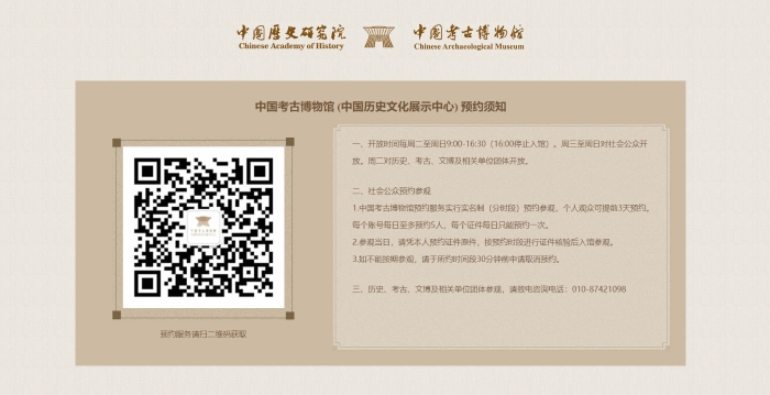 中國考古博物館開放時間為每周二至周日9:00-16:30(16:00停止入館)。掃碼預約↓