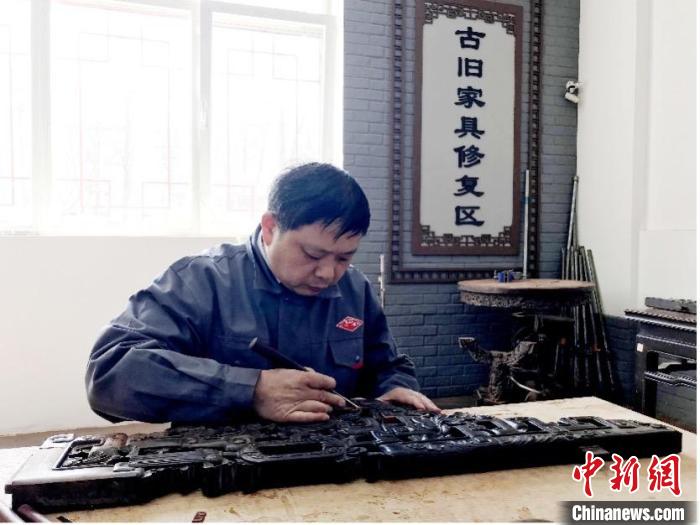 劉更生在修復(fù)古舊家具。劉更生 供圖