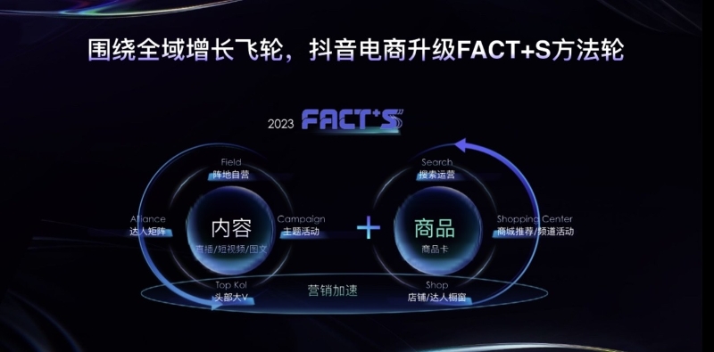 在上半年2023抖音電商生態(tài)大會(huì)上,“全域一體,飛輪增長(zhǎng)”這一新經(jīng)營(yíng)導(dǎo)向被提出,“人人都能做全域”的新機(jī)遇來(lái)臨,從“FACT+”到“FACT+S”,抖音電商經(jīng)營(yíng)方法論加速演進(jìn),內(nèi)容與貨架實(shí)現(xiàn)雙場(chǎng)共振與飛輪增長(zhǎng),全新的“增量時(shí)代”拉開(kāi)了序幕。