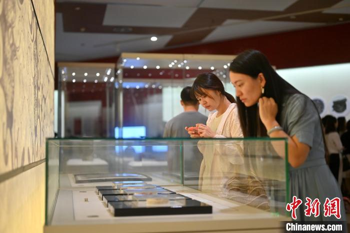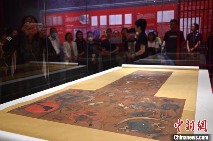 圖為展品辛追墓T形帛畫(復(fù)制品)吸引參觀者。俞靖 攝