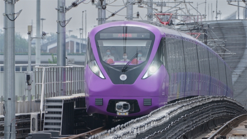“亞運號”專列車頭懸掛著杭州亞運會會徽,車身及車廂內(nèi)座椅、扶手采用的紫色調(diào)來自亞運會色彩系統(tǒng)中的虹韻紫。車廂裝配的高科技屏幕被稱作智慧車窗,可以顯示車輛運行時速、杭州地鐵線路圖及杭州值得推薦的景點與美食。