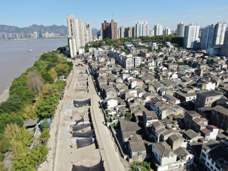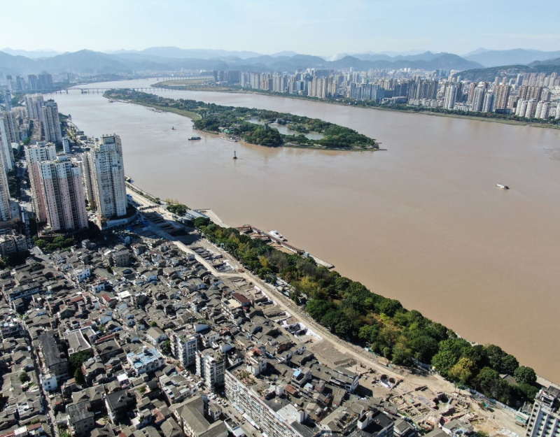 溫州朔門古港遺址和江心嶼遙遙相望。