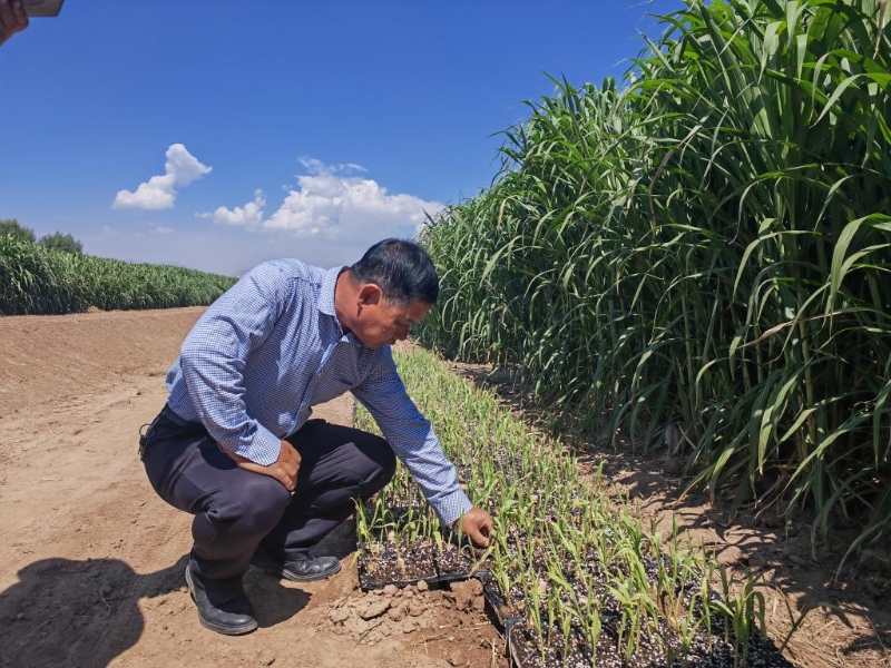 “巨菌草蛋白含量高,是菌菇栽培、牛羊飼養(yǎng)的好原料,而且耐鹽堿、根系發(fā)達(dá)、出草量大、‘吃鹽’能力很強(qiáng)。種植一百多天后,土地含鹽量下降了約70%?!毖芯恐行母呒夀r(nóng)藝師周興德欣喜地說。