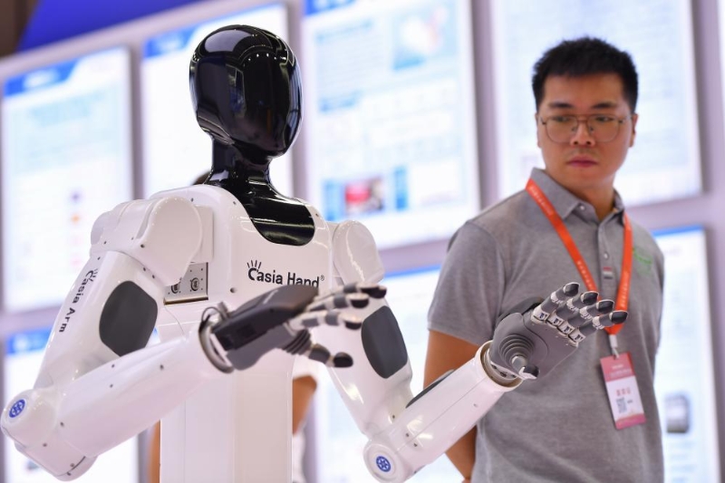 9月15日,參觀者在2023世界計(jì)算大會(huì)專題展上參觀服務(wù)機(jī)器人。新華社記者 陳澤國(guó) 攝
