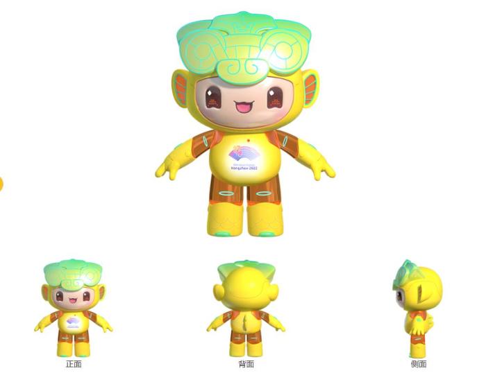 “琮琮”的設計靈感源自良渚玉琮,代表世界遺產(chǎn)良渚古城遺址。它全身以源自大地、象征豐收的黃色為主色調(diào),頭部裝飾的紋樣取自良渚文化的標志性符號“神人獸面紋”,意寓“不畏艱險、超越自我”。“琮琮”堅強剛毅、敦厚善良、體魄強健、熱情奔放,擅長力量型與傳統(tǒng)項目,如武術(shù)、舉重等。