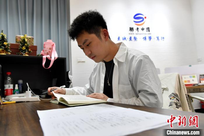 圖為簡(jiǎn)佑霖在備課?!≈行戮W(wǎng)記者 呂明 攝
