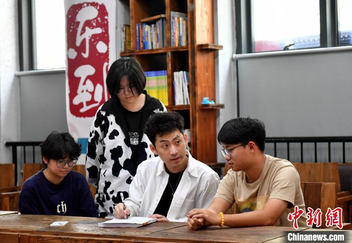 圖為簡(jiǎn)佑霖課后和學(xué)生探討問(wèn)題?!≈行戮W(wǎng)記者 呂明 攝