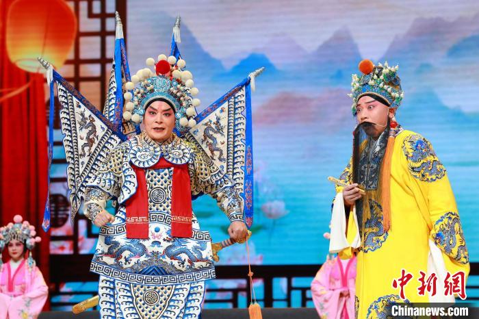 廣東漢劇、潮劇、正字戲、西秦戲、白字戲的演員們也紛紛拿出看家好戲。其中,來自廣東潮劇院的演員方展榮、謝繼順帶領(lǐng)青年演員,以群丑的藝術(shù)形式演出了潮劇《楊子良討親》選段;海豐縣西秦戲藝術(shù)傳承中心的陳嘉明、吳東杭,則演繹了西秦戲《連環(huán)計(jì)·小宴》選段。