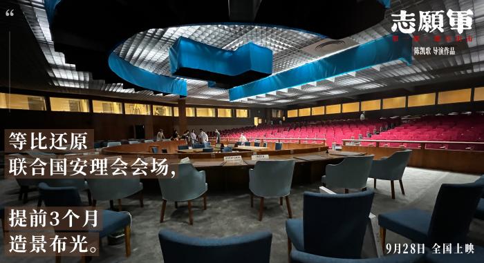 導(dǎo)演陳凱歌坦言這是“從影以來拍攝時間最長的一次,就是想把它拍好”。從人物造型到場景,有史料可依的部分都力圖還原。其中,新中國外交代表團第一次亮相聯(lián)合國,是三部曲中第一部《志愿軍:雄兵出擊》的重頭戲之一。彼時大使銜特派代表伍修權(quán)(張頌文 飾)率中國代表團出席聯(lián)合國安理會,這是新中國第一次出席聯(lián)合國相關(guān)會議,這段經(jīng)歷也成為中國外交史上濃墨重彩的一筆。為此主創(chuàng)們根據(jù)當(dāng)年的歷史資料,搭建了一個1:1還原的聯(lián)合國場景,演員張頌文在第一次進入這個場景的時候十分震撼:“基本上和現(xiàn)場圖一模一樣”。高還原度也讓飾演唐笙的章子怡“感受到73年前那一個莊嚴(yán)的時刻”。