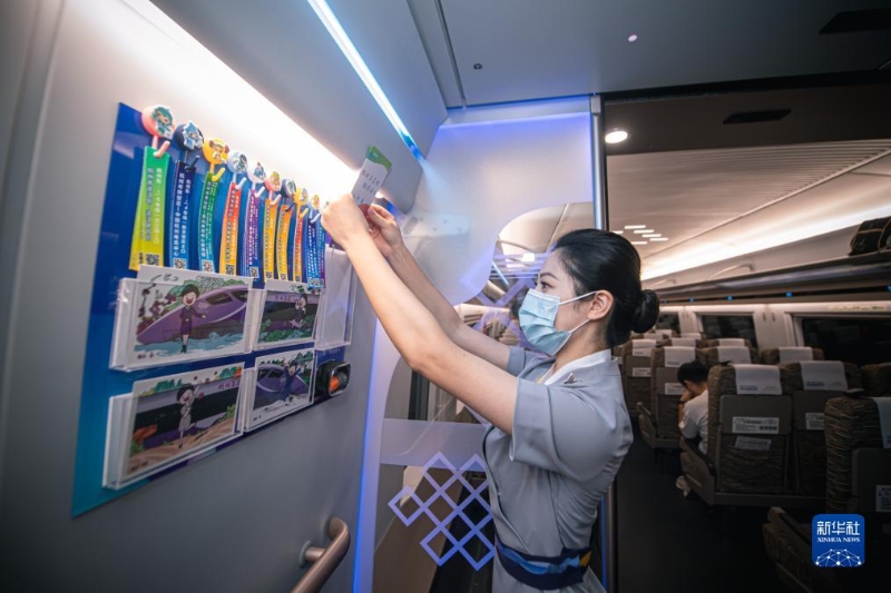 1號和8號車廂座位設(shè)置的智能交互終端提供高鐵娛樂中心、無線投屏、運(yùn)行信息等功能,旅客可在旅途中看電影、聽音樂。