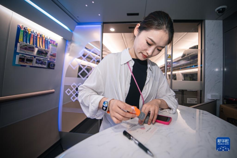 4號車廂設(shè)置無障礙設(shè)施、無障礙衛(wèi)生間、90厘米列車通過門、輪椅放置區(qū)、盲文標(biāo)識……列車上還提供電動輪椅渡板、輪椅餐桌板等,方便有需要的旅客出行。