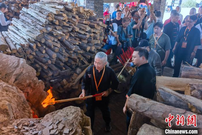 19日,祭窯神儀式后,閩臺陶瓷藝術(shù)家攜手點燃薪火。中新網(wǎng)記者 孫虹 攝