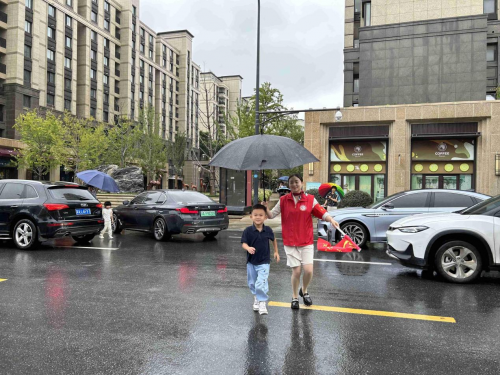 黨員及志愿者們身穿志愿者“紅戰(zhàn)袍”,站好“護(hù)學(xué)第一崗”。他們在道路兩旁有序指揮,引導(dǎo)接送車輛即停即走,溫馨提醒家長從指定通道護(hù)送孩子入園,不占道、不堵塞人行通道,送完孩子后有序離開,保障學(xué)生安全。在志愿者的引導(dǎo)下,校門口的擁堵情況得到了改善。為方便園區(qū)業(yè)主接送孩子,特意安排一輛觀光車沿著園內(nèi)主干道負(fù)責(zé)接送學(xué)生。
