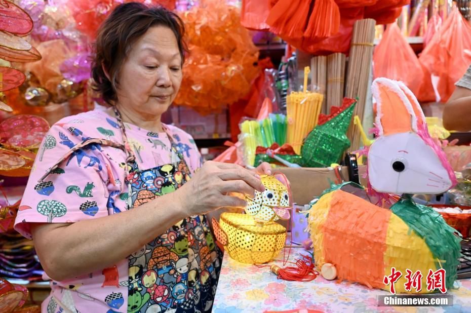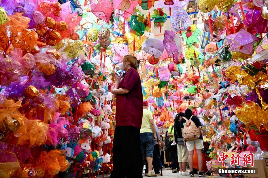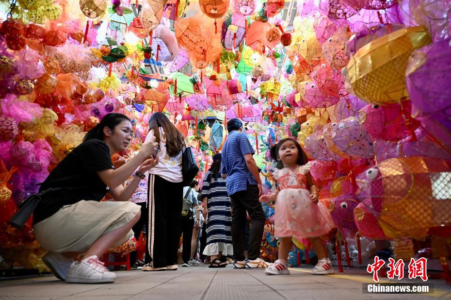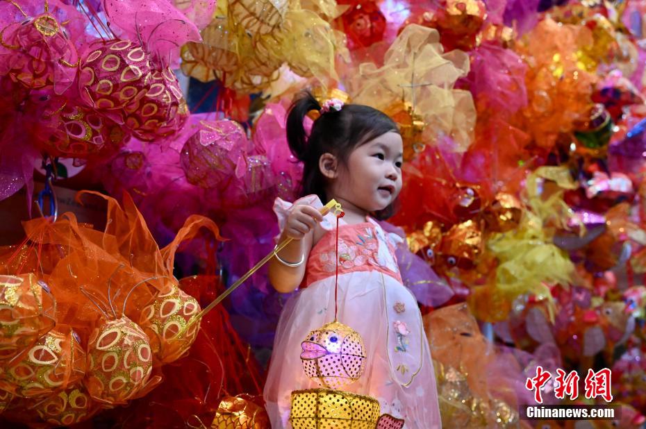 中秋佳節(jié)即將到來,9月20日,香港有市民到位于元朗大橋街市的“燈籠街”選購傳統(tǒng)燈籠?!盁艋\街”現(xiàn)場掛有近千個(gè)傳統(tǒng)手扎燈籠,吸引不少大人及兒童拍照留念。圖為小女孩穿上漢服與傳統(tǒng)燈籠合影。中新網(wǎng)記者 李志華 攝