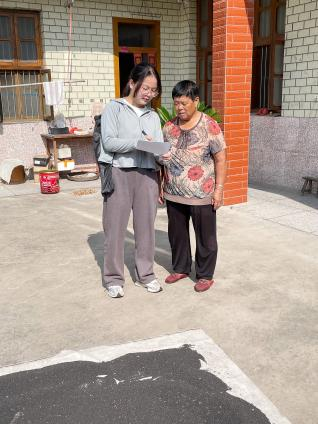 圖為團隊成員走訪農(nóng)民調(diào)查農(nóng)具使用情況通訊員戴晨供圖
