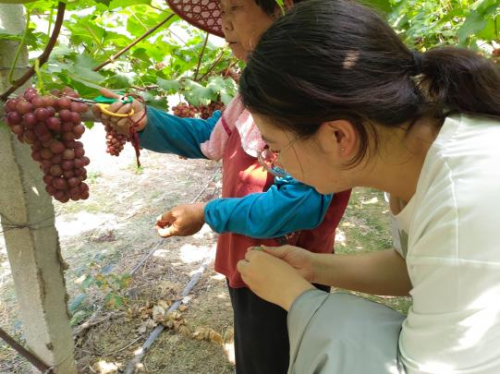 圖為農(nóng)民和團隊成員一起采摘種植問題改良后的葡萄通訊員丁君供圖