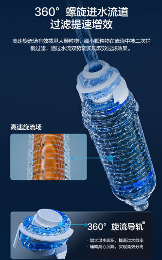 此外,安吉爾魚鰓過濾器采用了360°高效旋流分離結(jié)構(gòu)。作為安吉爾在魚鰓過濾器融入的核心專利科技,高效旋流分離所產(chǎn)生的高速旋流場能夠?qū)崿F(xiàn)雜質(zhì)二次分離的效果,同時還能做到不影響正常出水量,如此一來安吉爾魚鰓過濾器的抗污堵能力也較過往前置過濾器產(chǎn)品提升了2倍??紤]到傳統(tǒng)前置過濾器濾芯清洗難題,安吉爾魚鰓過濾器同步優(yōu)化了沖洗流程,簡單擰、旋、沖三部曲,即可完成過濾器的自清潔,每一次清潔等同換新,過濾器使用壽命更長久。