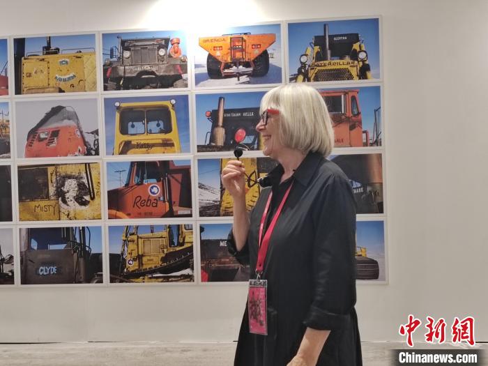 新西蘭攝影師安·諾貝爾憑借《南極車單》獲第23屆平遙國際攝影大展優(yōu)秀作品獎。圖為安·諾貝爾在其作品前。高雨晴 攝