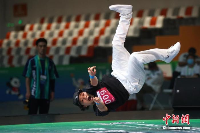 9月25日,第十四屆全運會霹靂舞項目女子冠軍賽在江蘇省南京市溧水極限運動館舉行。圖為河南選手劉清漪在比賽中。 中新社記者 泱波 攝