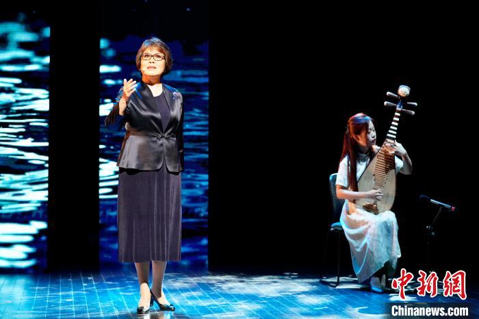 方舟認為,在舞臺上的朗誦,完全不同于在電臺話筒前的朗誦。她與一位琵琶演奏家完成白居易的《琵琶行》。上海戲劇學院供圖