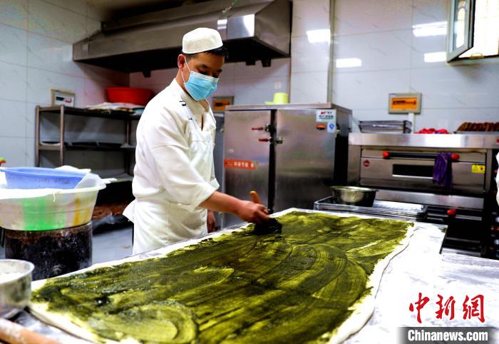 圖為在面皮上涂抹香料。薛蒂 攝