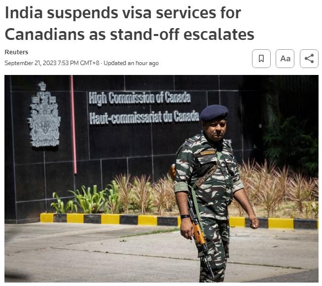 另據(jù)《印度時報》報道,隨后,加拿大的印度簽證申請中心官方網(wǎng)站發(fā)布一則通知,上面寫著:“印度公署的重要通知:由于運(yùn)營原因,自2023年9月21日起,印度簽證服務(wù)已暫停,直到另行通知。請繼續(xù)關(guān)注網(wǎng)站,以獲取進(jìn)一步的更新信息。”