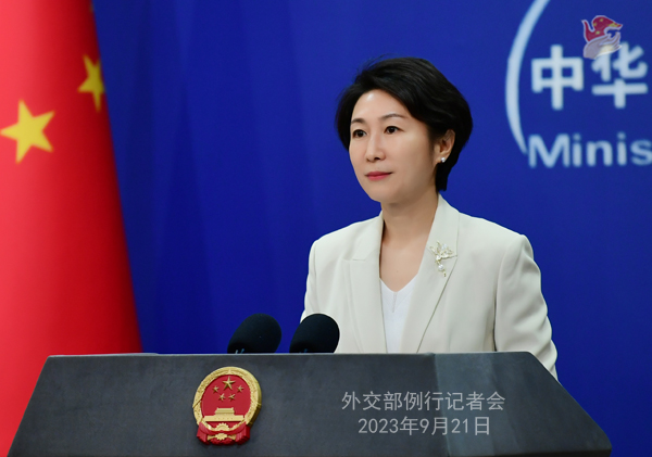 中新網(wǎng)北京9月21日電(謝雁冰)中國外交部發(fā)言人毛寧9月21日主持例行記者會。