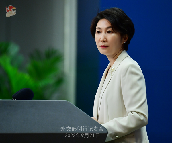 中新網(wǎng)北京9月21日電(謝雁冰)中國(guó)外交部發(fā)言人毛寧9月21日主持例行記者會(huì)。