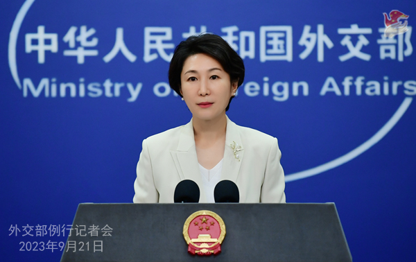 中新網(wǎng)北京9月21日電(謝雁冰)中國(guó)外交部發(fā)言人毛寧9月21日主持例行記者會(huì)。