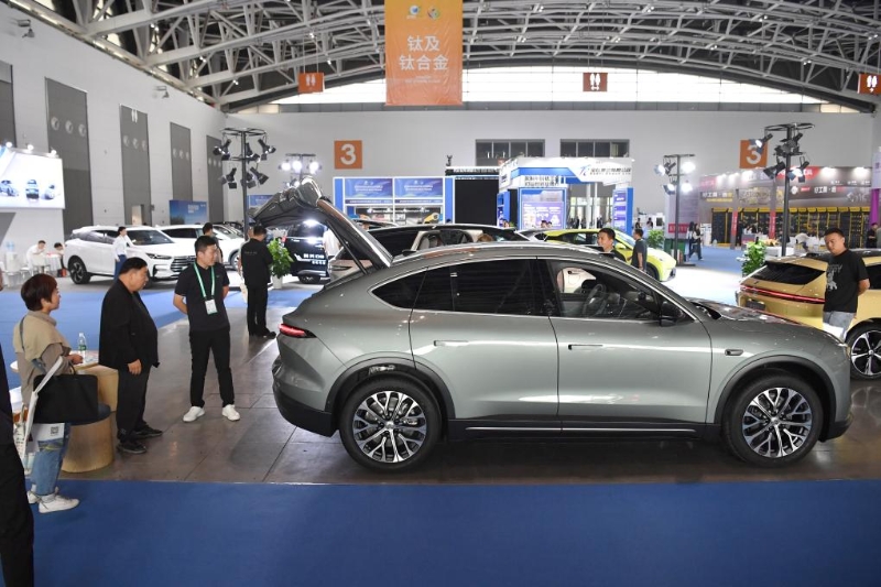 9月22日,觀眾在2023歐亞經(jīng)濟(jì)論壇經(jīng)貿(mào)合作博覽會暨中國(陜西)進(jìn)出口商品展上參觀新能源汽車。 新華社記者 邵瑞 攝