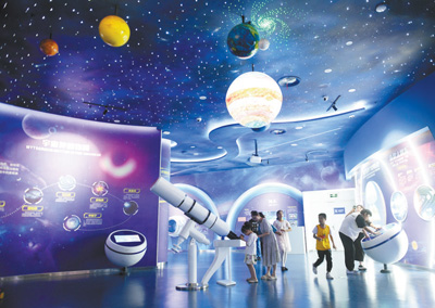 安徽省阜陽(yáng)市科技館內(nèi),天文科普展覽吸引不少市民前來(lái)參觀體驗(yàn)。