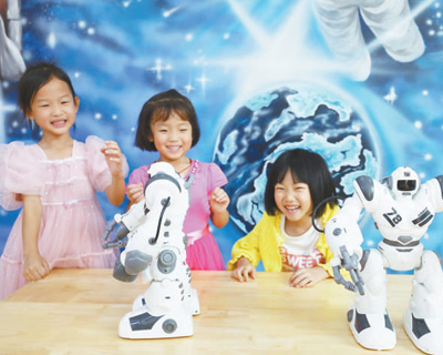 河北省唐山市豐潤(rùn)區(qū),幼兒園小朋友與智能機(jī)器人互動(dòng)。