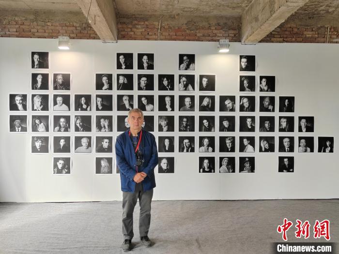 9月20日,美國攝影師吉羅姆·德·帕林吉在其作品前。中新社記者 高雨晴 攝