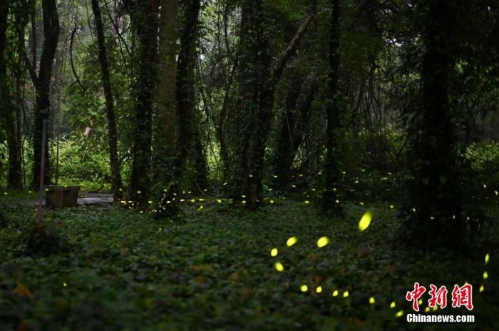 資料圖:成群的螢火蟲在華南植物園的樹林中穿梭飛舞。中新社記者 陳楚紅 攝