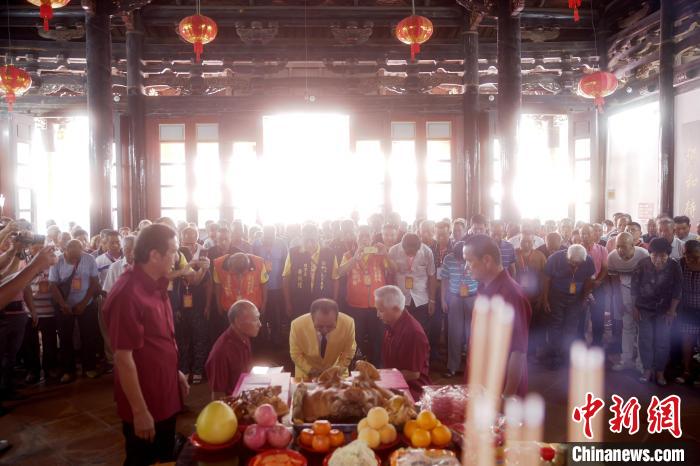 圖為廈門江夏堂文物保護(hù)管理站理事長黃偉煌率兩岸宗親祭祖。中新網(wǎng)記者李思源攝