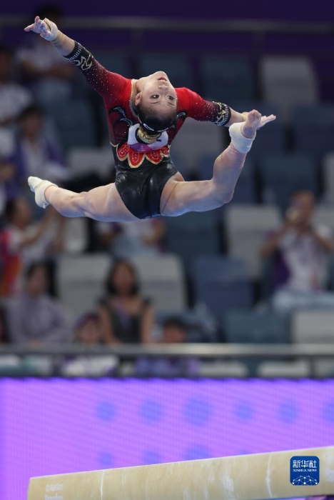 9月25日,中國隊選手左彤在平衡木項目比賽中。