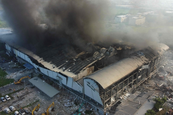 屏東科技產(chǎn)業(yè)園區(qū)明揚國際公司事故現(xiàn)場(法新社)