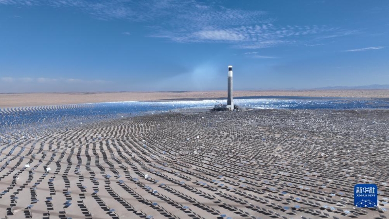 這是上海電氣迪拜光熱光伏復(fù)合項目(2023年7月25日攝,無人機照片)。