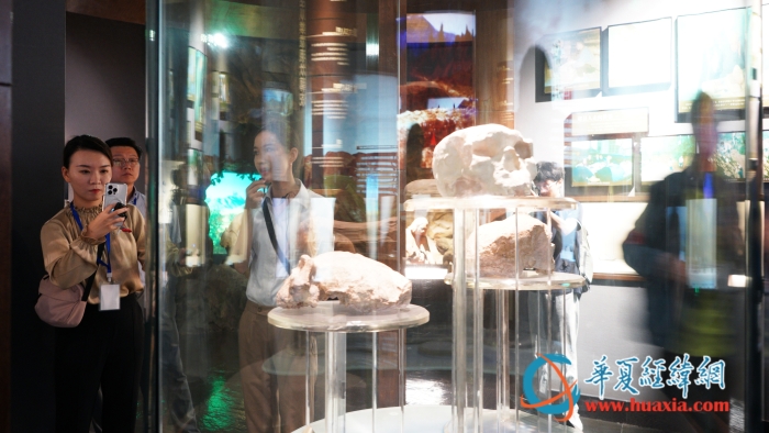 十堰市是中國古人類的發(fā)祥地之一。100萬年前“鄖縣人”頭骨化石的發(fā)現(xiàn),填補了中國古人類演化發(fā)展100萬年階段的重要缺環(huán),證明了十堰地域為古人類的起源地。而在十堰市博物館《遠古人類家園》陳列展覽區(qū),兩岸媒體人則近距離見證了這補寫人類發(fā)展史的奇跡——“鄖縣人”頭骨化石。