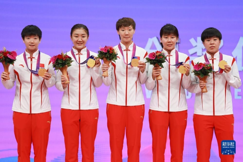 當(dāng)日,在杭州亞運(yùn)會(huì)乒乓球項(xiàng)目女子團(tuán)體決賽中,中國(guó)隊(duì)以3比0戰(zhàn)勝日本隊(duì),奪得冠軍。