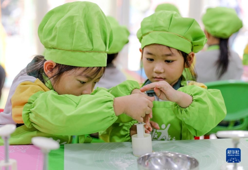 9月26日,江蘇省南京市一家幼兒園的小朋友在學(xué)習(xí)制作冰皮月餅。