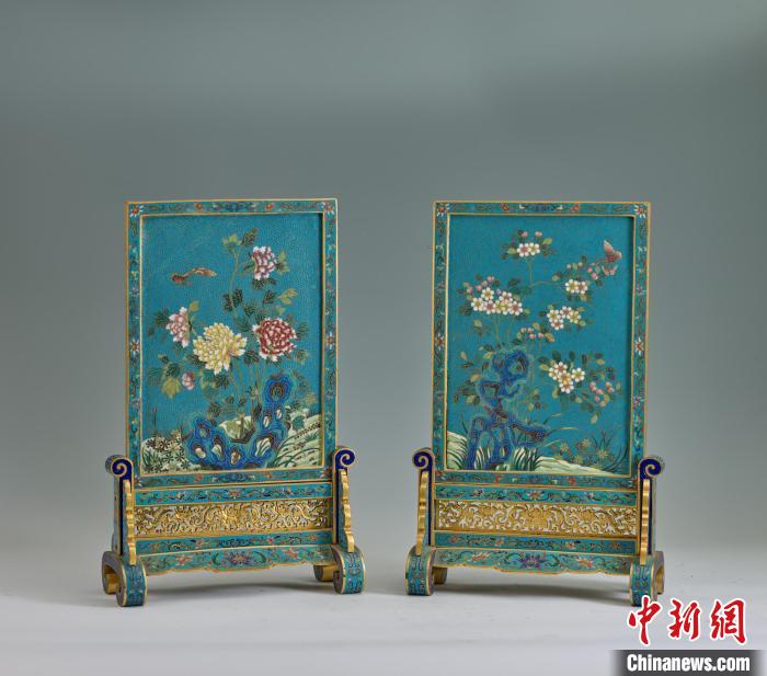 清乾隆掐絲琺瑯蝴蝶紋屏風(fēng)一對。上海博物館 供圖