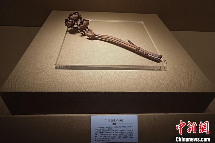 百余件如意與獅子題材文物亮相福建石獅,圖為竹雕蓮花式如意。吳冠標(biāo) 攝