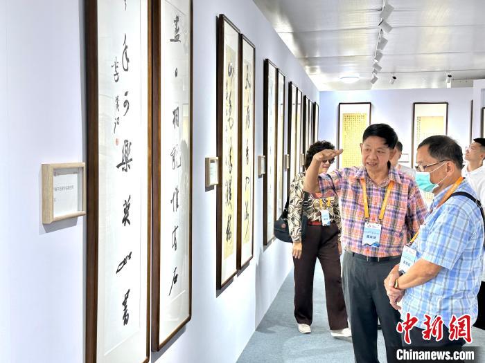 此次書畫展共有來自海內外的佛教界、文藝界嘉賓等約350人參加?;顒又?,還舉行了書畫家交流筆會,書畫名家現場揮毫潑墨,交流書畫藝術。(完)