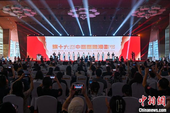 9月26日,第十六屆中國國際漫畫節(jié)開幕式暨第二十屆中國動漫金龍獎頒獎大會在廣東省廣州市舉行。圖為第十六屆中國國際漫畫節(jié)開幕儀式。 中新社記者 陳驥旻 攝