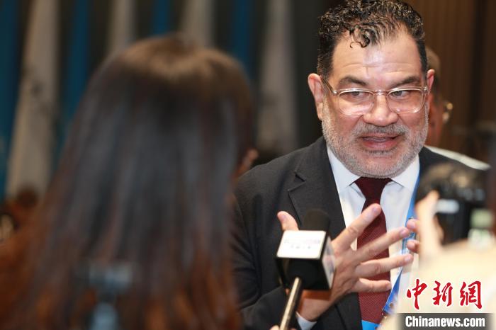 圖為26日國際博物館協(xié)會咨詢理事會主席安東尼奧·羅德里奎斯在接受記者采訪。中新社記者 梁犇 攝