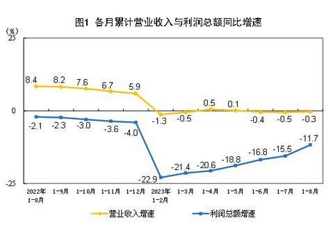 1—8月份,規(guī)模以上工業(yè)企業(yè)實現(xiàn)營業(yè)收入84.33萬億元,同比下降0.3%;發(fā)生營業(yè)成本71.83萬億元,增長0.2%;營業(yè)收入利潤率為5.52%,同比下降0.71個百分點。