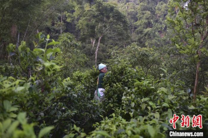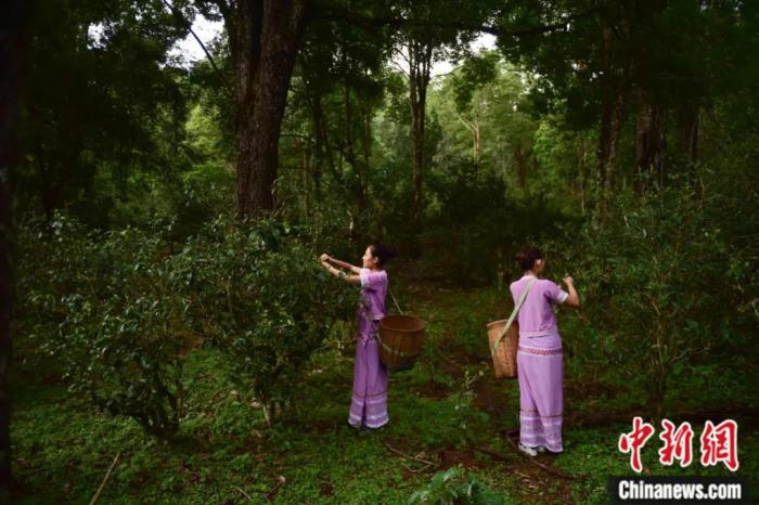 云南普洱,當(dāng)?shù)卮迕裨诰斑~山古茶園采茶,這里的茶樹樹齡大多在百年以上。劉冉陽 攝