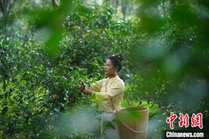 景邁大寨的傣族姑娘在茶園采茶。劉冉陽 攝