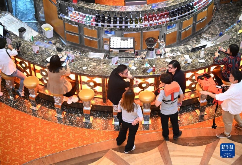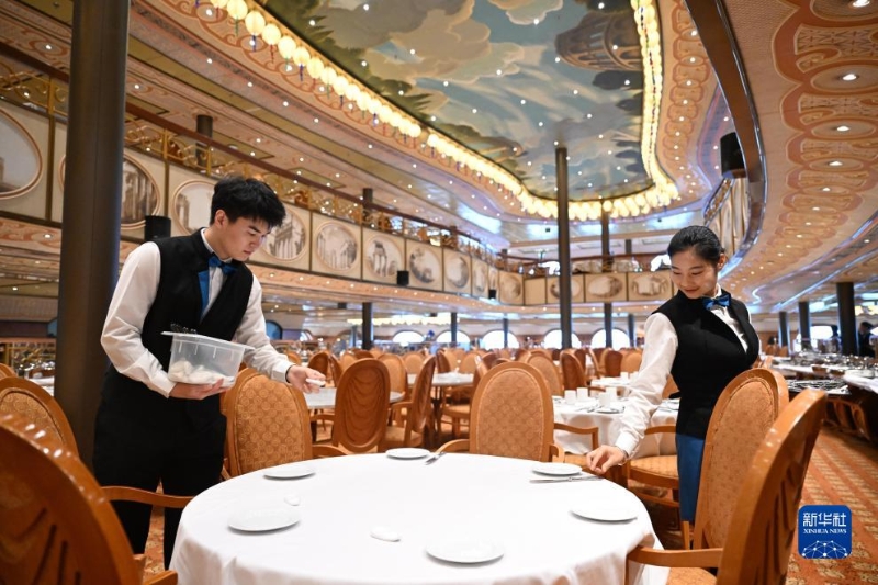 9月27日,中國船舶集團(tuán)旗下愛達(dá)郵輪“地中?!碧栢]輪工作人員在郵輪餐廳忙碌。